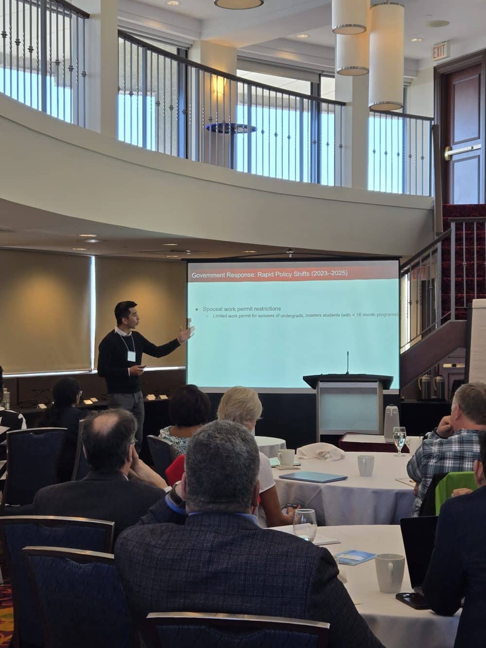 - Impact of the Reduction in the Number of International Students, presented by four ACCRU student ambassadors; Sarfaroz Yanusof, Sandy Abdo, Chimerem Amiaka, Harleen Kaur Kalra, provided an on-the-ground perspective of recent enrolment changes and their broader effects. The session was followed by a panel discussion to further explore policy, economic, and academic implications.